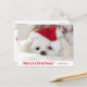Cute Fluffy White Maltese Puppy Dog in a Santa Hat Postcard