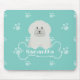 Cute Fluffy White Poodle Puppy Dog Lover Monogram Mouse Pad