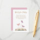 These simple, cute baby shower "Books for Baby" enclosure cards feature a hand drawn story book with pastel pink and purple butterflies fluttering out of it. Faux gold foil accents add a touch of elegance. The back contains a white sketched square pattern over a custom colour background (shown in pink).