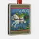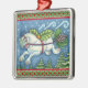 CUTE FLYING CHRISTMAS PONY PULLING PINECONE SLEIGH METAL ORNAMENT