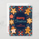 Step into a world of whimsical holiday cheer with this delightful Christmas postcard. The deep midnight blue background sets the stage for a lively border of festive foliage, sprinkled with tiny red berries and charming leaves. At the heart of the design are four delightful gingerbread friends: two cheerful gingerbread men and two intricately designed gingerbread snowflakes, all framed by a classic red and white bauble. The front of this postcard is your personal canvas, allowing you to customise the "Merry Christmas" message and the family name below. On the back, you can add your family's address and a heartfelt note, making this a truly personal way to send holiday warmth to loved ones.