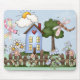 Cute Folk Country House and Picket Fence Art Mouse Pad