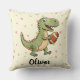 This personalised throw pillow features a cute dinosaur sporting a football with small hearts in the background. It is perfect for little football fans and dinosaur lovers. Customise it with your child's name for a unique touch.