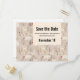 Save the date winter birthday postcard with a cute Nordic style pattern. Winter pine trees, bears, reindeer and squirrels. Light brown colour.