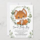Cute Forest Fox Greenery Wreath Baby Boy Shower Invitation