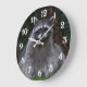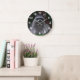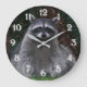 For nature and wildlife fans! Decorate a wall space with this nature themed wall clock with white numerals that features the photo image of a cute, forest Racoon posing for the camera. Select your clock style and size along with hand colour.