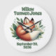 Celebrate the arrival of your little lady with this nursery wall clock, which feature a rustic, illustration-style image of an adorable young fox cub dreaming happily in a bed of verdant green leaves. Customise with baby's name and birth date.