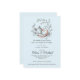 This cute woodland blue boy baby shower invitation features a sleeping fox illustrated in a gentle, storybook style with a vintage feel. Perfect for a forest-themed or gender-neutral celebration, it includes the sweet phrase: "Our little fox is snug in the den, and we can't wait for our tale to begin." A whimsical and cosy style for welcoming the little one soon to arrive. Available in print, as a digital download, or both.