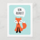 Cute change of address / moving announcement postcard featuring a cute cartoon fox and a speech bubble with the text "New address".