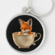 Cute Fox Drinking Tea on Groomsmen Gift Key Ring