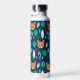 Cute Fox Face Forest Leaf Pattern Monogram Water Bottle