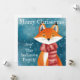 Cute winter fox wearing a scarf in a snowing scene with custom text.
