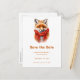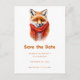 Save the date postcard with an adorable illustration featuring a cute little red fox face
