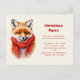Christmas party invitation postcard with an adorable illustration featuring a cute little red fox face