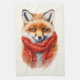 Cute Fox in a Red Scarf Autumn Image Tea Towel