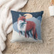 Beautiful fox in the winter snow, digital painting illustration on throw pillow.