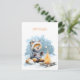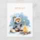 Cute fox in warm sweater roasting marshmallows, holiday postcard
