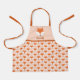 An apron with a pattern of illustrated fox faces on a light orange background. It also includes darker orange accents and a customisable name.