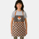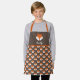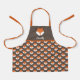 An apron with a pattern of illustrated fox faces on a brown background. It also includes darker orange accents and a customisable name.