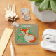 Cute green eyed fox wrapping its tail around a coffee cup, personalised keychain.