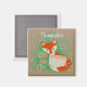 Cute green eyed fox wrapping its tail around a coffee cup, personalised magnet.