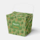 Add a touch of woodland magic to your celebration with this charming personalised favour box. Featuring a delightful repeating pattern of tiny orange foxes wandering through a lush evergreen forest, this box is perfect for forest-themed birthdays, baby showers, or autumn parties. The front features a customisable dark green label with "Megan's Birthday" in a clean white and playful orange script, which you can easily edit to suit your guest of honour. Sturdy, stylish, and whimsical, it's the ideal way to package treats or small gifts for your guests.
