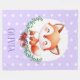 Personalised watercolor cute little fox design with purple background and polka dots