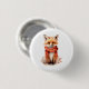 A Button with an illustration of a reddish orange fox pup. A subtle smile on his face. Wearing a nice red scarf for warmth.