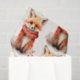 Tissue paper with an illustration of a reddish orange fox pup. A subtle smile on his face. Wearing a nice red scarf for warmth.