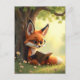 Cute fox wearing glasses lies comfortably beneath a tree in the forest, reading a book. Cute, custom postcard..