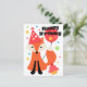 Cute fox with balloon cupcake star happy birthday postcard