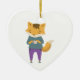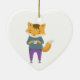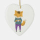 Cute fox with cup of tea ceramic ornament