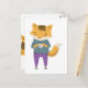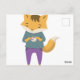 Cute fox with cup of tea postcard