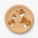 Cute foxes with hearts, hand drawn paper plate