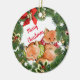 This Christmas ornament with two foxes is too cute. The design features an illustration of two baby foxes wearing their holiday scarves. There is a festive wreath with a red bow and holly leaves. Plus the greeting "Merry Christmas" On the backside there is another greeting and the text "May the spirit of the holiday season be with you at Christmas." Give this ornament to that special someone who loves foxes or cute baby animals.