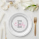 Cute Framed Name & Monogram | Light Grey & Pink Paper Plate