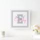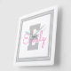 Cute Framed Name & Monogram | Light Grey & Pink Square Wall Clock