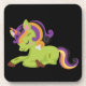 Coasters with an image of a Frankenstein style unicorn. Purple and green colours. Spooky cute.