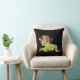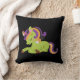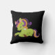 Pillow with an image of a Frankenstein style unicorn. Purple and green colours. Spooky cute.