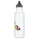Water bottle with an image of a Frankenstein unicorn. Purple and green colours. Spooky cute.