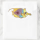 Here's a cute butterfly fish design on a sticker. In gold, violet, and turquoise (with golden freckles) it is a cartoon watercolor design of the Long-Nosed Butterflyfish found in coral reefs on tropical islands in Hawaii and Tahiti. Choose from a number of different shape sticker options. Personalise this sticker to create your own message, for a label or gift tag or to use in scrapbooks or journals.