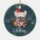 Cute French Bulldog Santa Hat Merry Christmas Ceramic Ornament