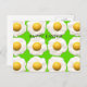 Cute and quirky brightly coloured design of fried eggs in a pattern on a lime green background. Suitable food motif for an Easter present or just for something a bit off the wall. Featuring the bright colours of canary yellow, lime / grass green and white.