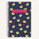 Cute Frog and Doodle Heart Pattern Navy Blue Pink Notebook