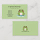 A green business card with an illustration of a cute frog on its pond! The back comes with a customisable text. It could be perfect for all activities with kids such as babysitting, child care, tutor, etc
