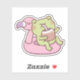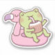 A cute frog is chilling and relaxing on a pink flamingo pool float while drinking coconut juice. Adorable doodle for summer! ♥