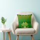 Cute throw pillows that feature a cute cartoon frog sitting on the bottom of the pillow with a green background. This adorable frog is looking for a new friend and who better than kids who would cuddle with him every night.