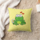 Cute Frog Flower and Hearts Yellow Throw Pillow