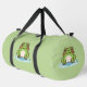 A green duffle bag with an illustration of a cute frog on its pond and customisable text on the side! It could be perfect for a kid or a friend who loves Kawaii animal and nature!