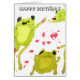 Cute green frogs original artwork. These green frog cartoons are playful and perfect for children's art and frog lovers everywhere. Happy Birthday card text is customisable.